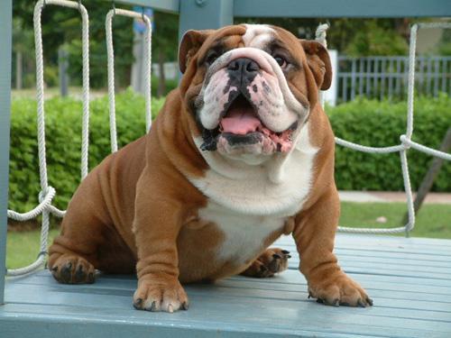 斗牛犬的个头虽然不高大,但它们却拥有一副强壮、有力的体魄,肌肉发达程度和它们的身材大小,完全不成正比。斗牛犬的头很大,它们的头围几乎有它们的身高那么长,呈方形,额头很多皱纹,鼻子短,四肢短小但很有力,所以在中世纪的时候,做为敢和牛搏斗的犬类,参加斗牛比赛。直到1835年,欧洲国家全面禁止斗牛这种血腥残忍的比赛,它们就作为护卫犬和工作犬被人们饲养。